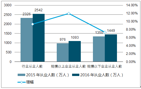 2016年,全國家政服務(wù)業(yè)從業(yè)人員 2542萬人,同比增長 9.3%。從人員結(jié)構(gòu)看,規(guī)模以上家政服務(wù)企業(yè)從業(yè)人數(shù)1093萬人,同比增長12%;規(guī)模以下家政服務(wù)企業(yè)從業(yè)人數(shù)1449萬人,同比增長7.3%。