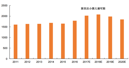 建國之后我國共經(jīng)歷了三次嬰兒潮,分別是“建國后”嬰兒潮、“三年自然災(zāi)害后”嬰兒潮、八十年代嬰兒潮;進(jìn)入 2017 年,八 十年代嬰兒潮中出生的人口年齡跨度為 27-36 歲,上一輪人口高峰中出生的人口正處于適宜生育的年齡,其中大部分人群都已經(jīng)成家立業(yè), 家庭生活穩(wěn)定;所以有望迎來第三次嬰兒潮的回聲潮,帶來第四次嬰兒潮。