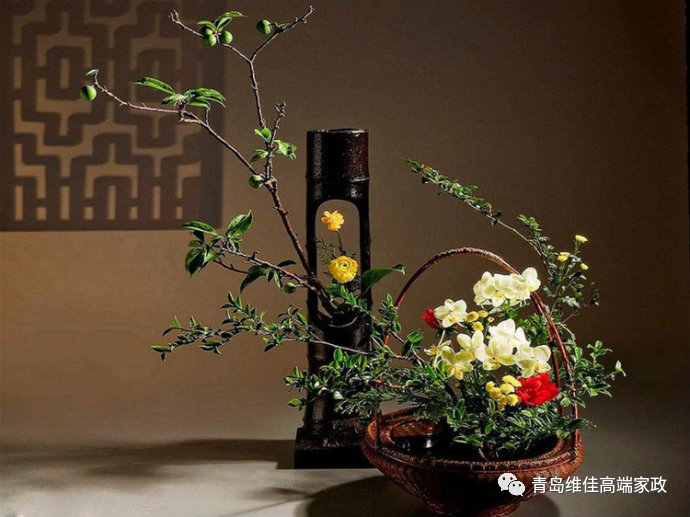 現(xiàn)代居室的綠化、美化除采用擺、吊、掛等擺設(shè)手法外,主要采用插花藝術(shù)來美化室內(nèi)空間,增添生活情趣。