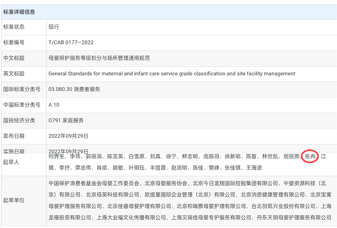 2022年9月29日,由維佳公司創(chuàng)始人張冉女士參與編制的《母嬰照護(hù)服務(wù)等級(jí)劃分與場(chǎng)所管理通用規(guī)范》在北京正式發(fā)布并面向全國(guó)實(shí)施。這是全國(guó)首個(gè)將母嬰照護(hù)服務(wù)機(jī)構(gòu)所提供服務(wù)進(jìn)行分等定級(jí)的母嬰服務(wù)行業(yè)團(tuán)體標(biāo)準(zhǔn)。
